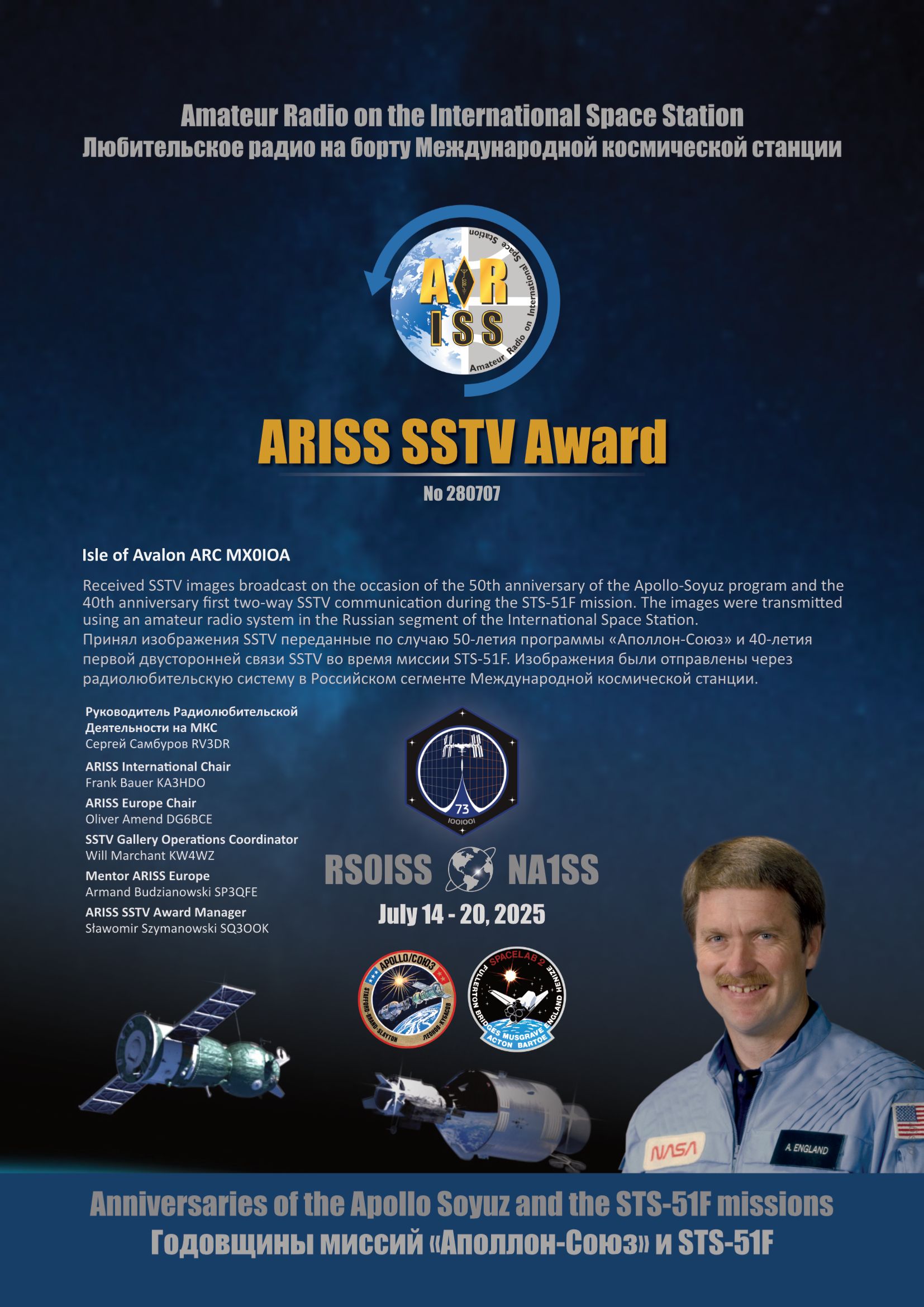 40 years ago, Tony England W0ORE during the Challenger shuttle mission STS 51-F in 1985, he achieved the first ever two-way Slow Scan TV (SSTV) space contact.