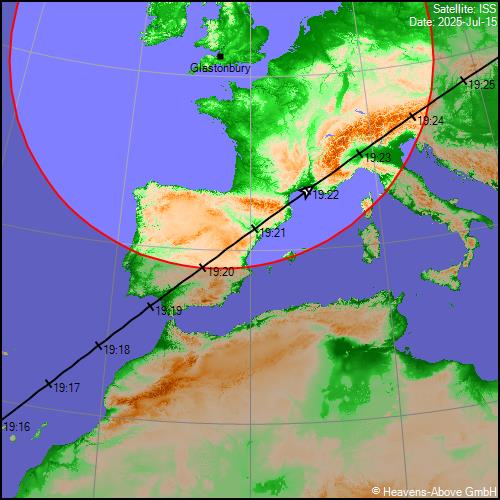 19th July AOS 18:18:04Z 10° WSW max azimuth 18:21:23Z 60° LOS SSE 18:24:42Z