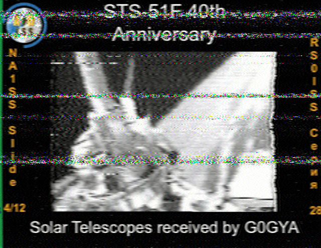 There’s something curiously meta about the first image being a SSTV image of an SSTV image from 40 years ago. The images are of the STS-51F Shuttle launch on the 29th July 1985. One engine out of three failed and the mission was aborted to orbit - taking up a lower orbit that planned because it was already past the point of no return when the engine failure occurred.